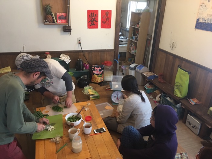隣の小間書菜にいる台湾人の女の子たちが来てくれて、語学のお勉強をしながら郷土料理を一緒に作ろうという企画になりました。